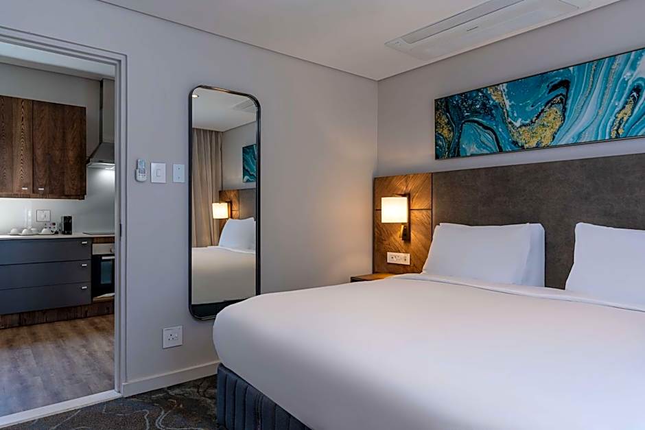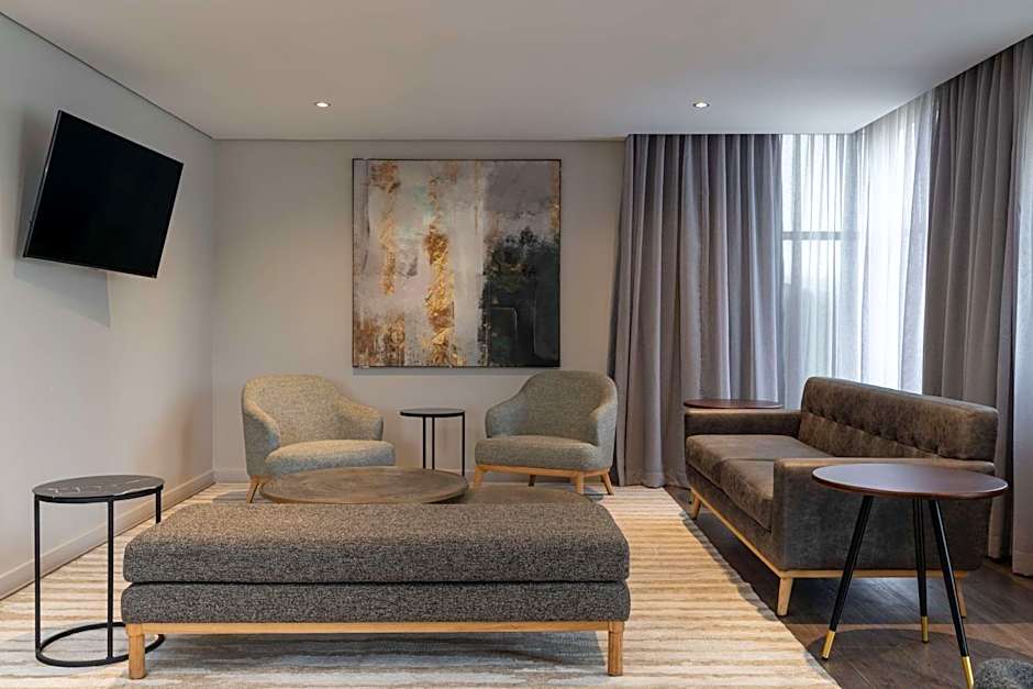 This spacious suite features a kitchenette, a seating area, 1 separate bedroom and 1 bathroom with a walk-in shower and a bath. A kitchenette fitted with kitchenware, a microwave and a toaster is available for cooking and storing food. The air-conditioned suite features a flat-screen TV with cable channels, a mini-bar, a tea and coffee maker, executive lounge access as well as pool views. The unit has 1 bed.